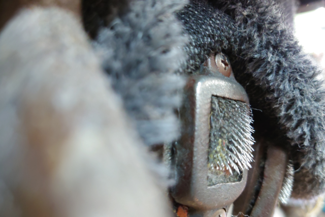 この機械と辻本さんの熟練すぎる技により、糸からクラフトファー(フェイクファー、エコファー)の元となる