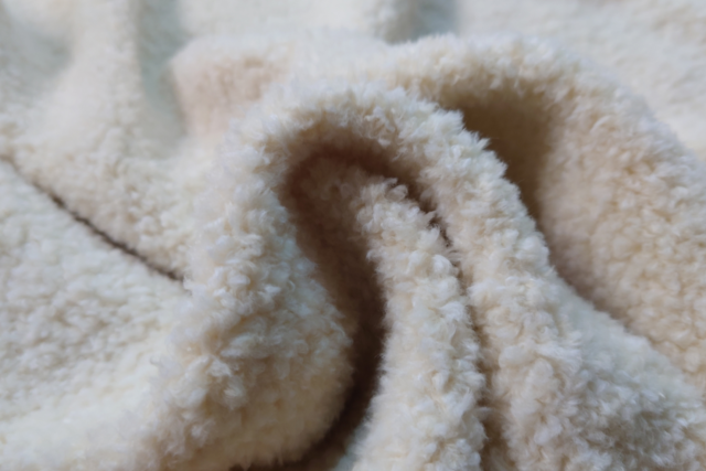 毛割後の生地は糸っぽさが無くなり、綿状のようにふわふわっとした毛先になりますよ。