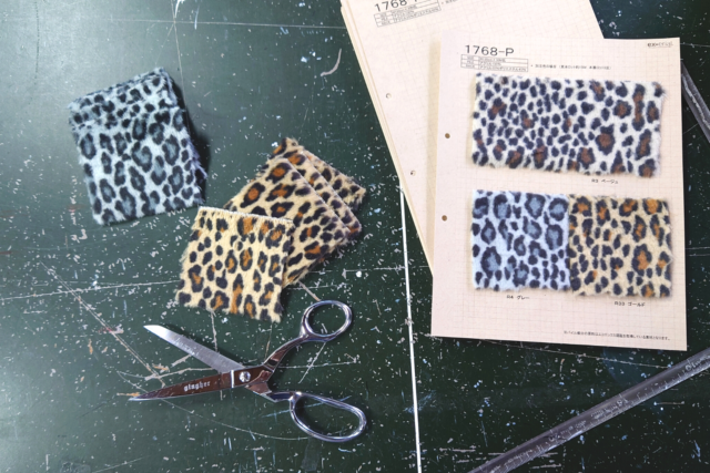 サンプル帳に並ぶ、四角いファー生地ってなんとなくカワイイ。