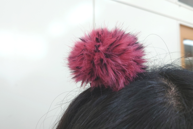 ヘアゴムに生まれ変わったファーポンポン。